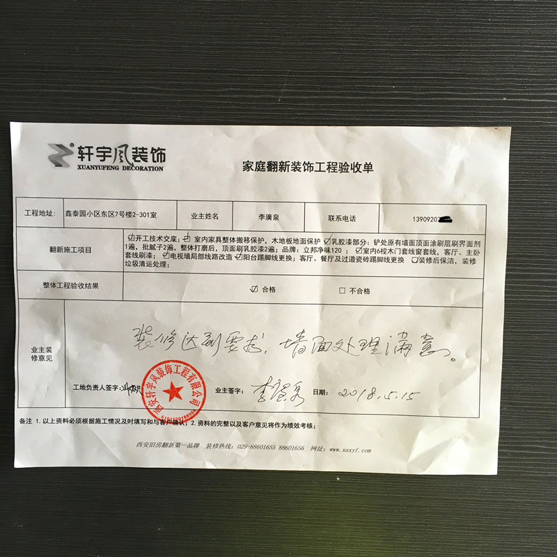 • 明德门鑫泰园小区——顶面墙面:乳胶漆 装修原由:此客户居住在人口集中的明德门,刷新房子的计划也早已经有,这次刚好家里孩子结婚,趁这个节点把房子整体刷新一下,让家变的新一些,客人来家也能感觉到变化的喜庆感。因为客户房子相对户型大一些,家里的家具特别的多,客户去过多家公司对比,对家具搬移保护的工作不满意,最后在轩宇风工地现场踏勘后,觉得很满意,能达到他的要求,对比之下选择轩宇风装饰。因为专业,所以服务更加到。客户喜欢多彩的房间,我们就更具居家的情况,给每个人一个喜欢的色彩;多彩的家从装修开始。 装修材料: 顶面乳胶漆:立邦净味120;多种颜色调色搭配。 装修时间:12天时间左右; 项目工程量描述如下: 1.室内所有家具整体搬移保护,地面PVE棉加强保护,其它物品保护等; 2.室内墙面顶面铲除原有墙面涂刷层,批腻子;顶面乳胶漆。 3.其它安装类及垃圾外运处小区;
