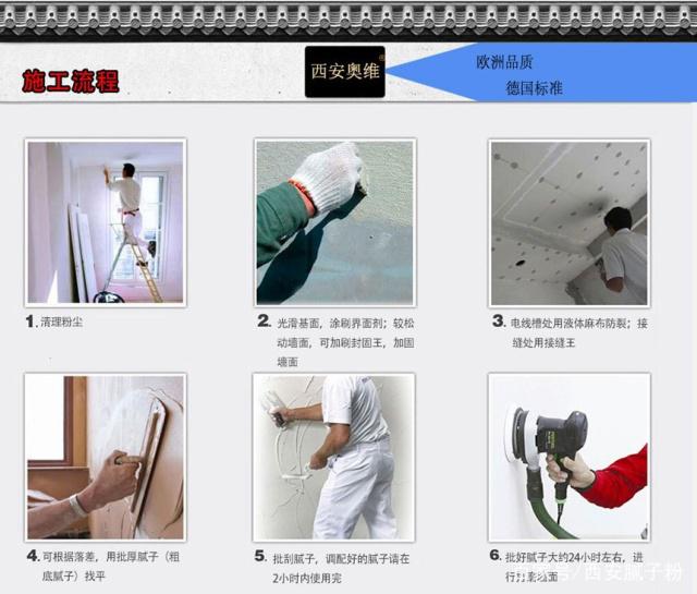 西安奥维腻子粉执行国家腻子双标准质量要求,质量稳定可靠,只需兑水即可施工。
