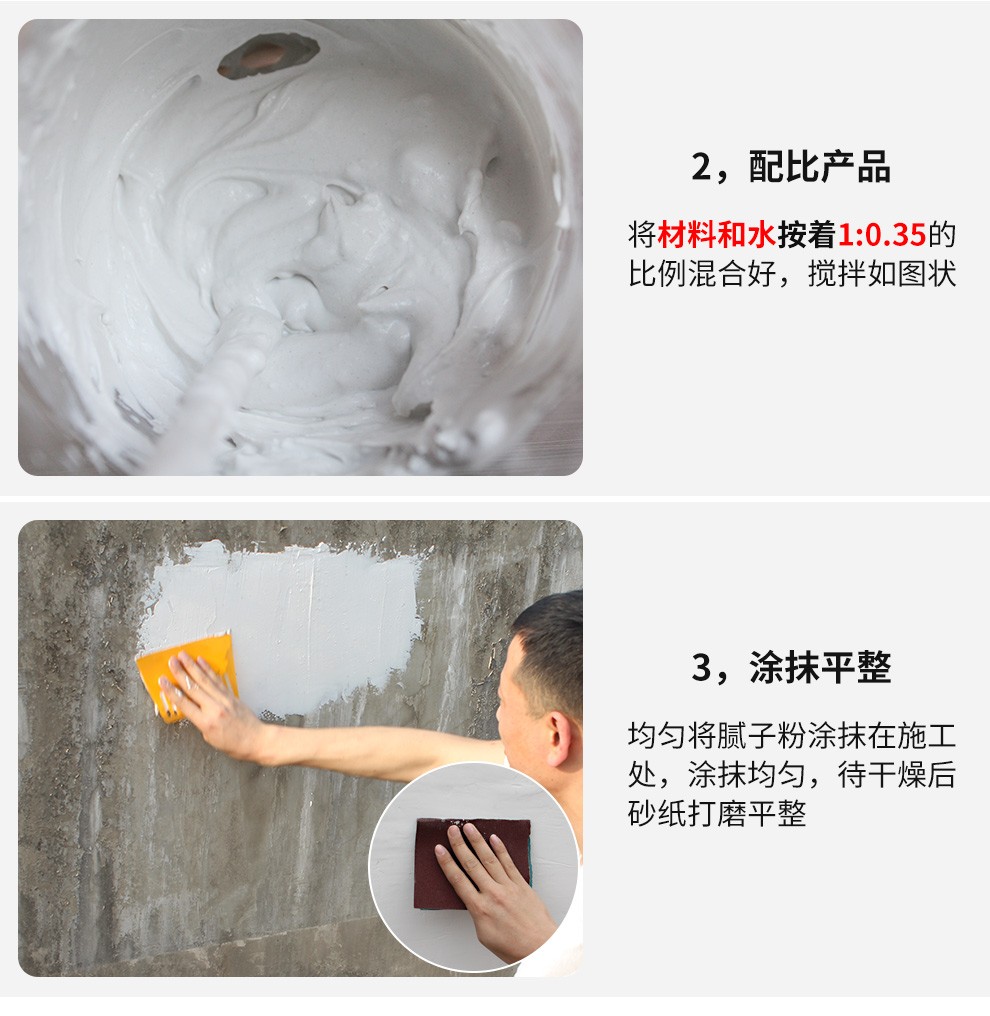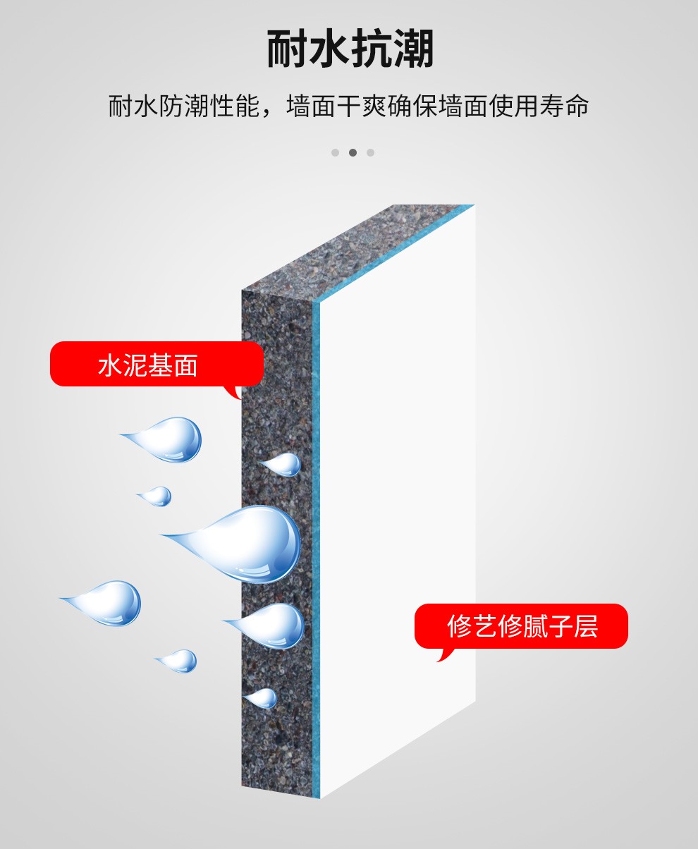 粘结性强,耐水性好,透水性好,抗裂能力强,易批刮打磨。4、超强的抗裂、耐水能力