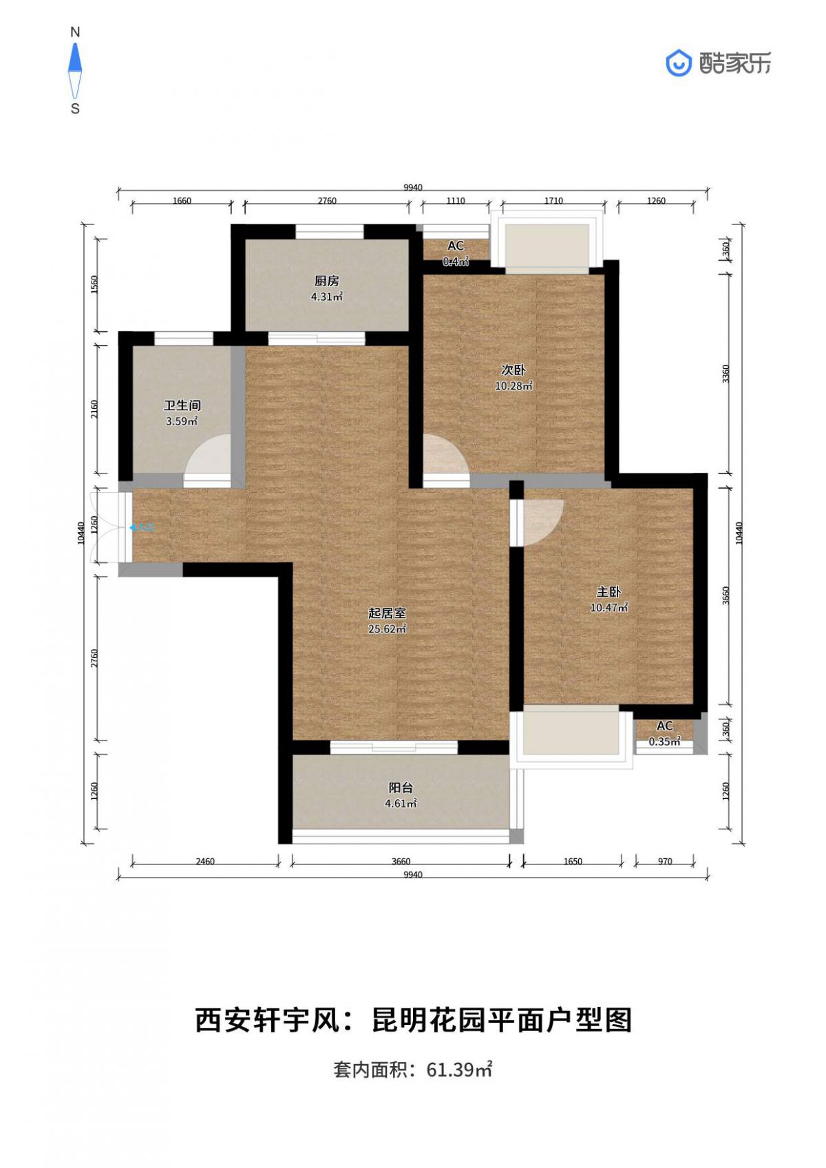 首页 > 找我家 > 昆明花园 > 户型:2居 2#E户型